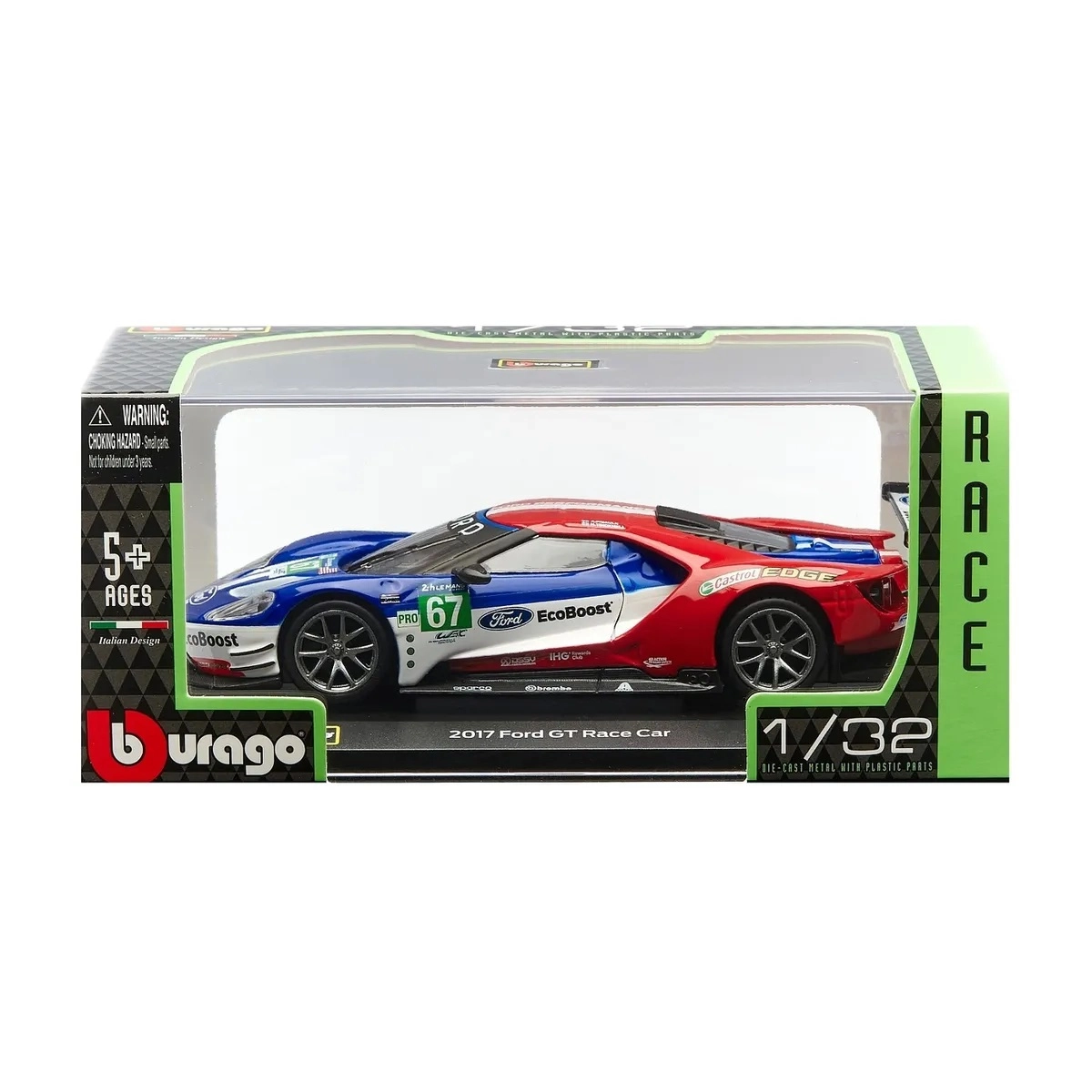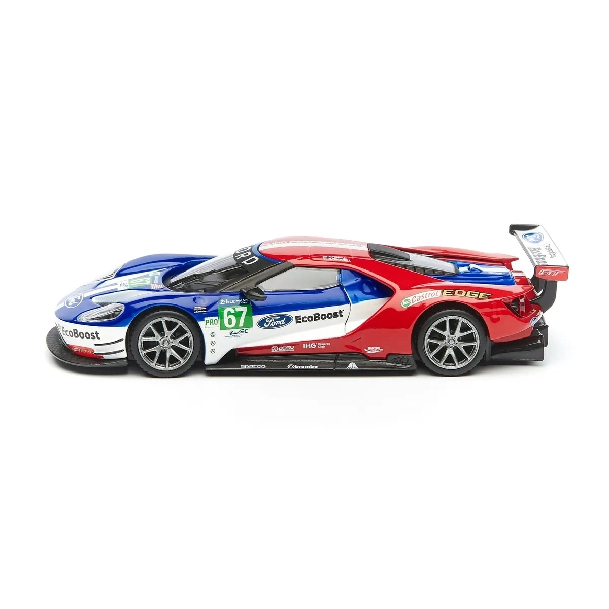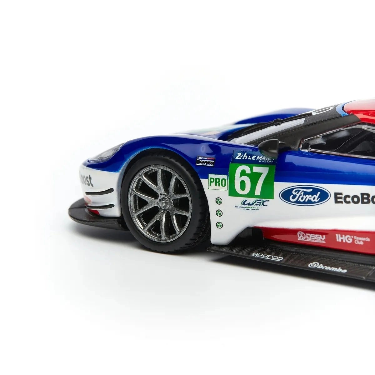 Le stampe originali FORD, EcoBoost e il numero di gara 67 donano al modello un carattere racing che risalta in vetrina e in foto.