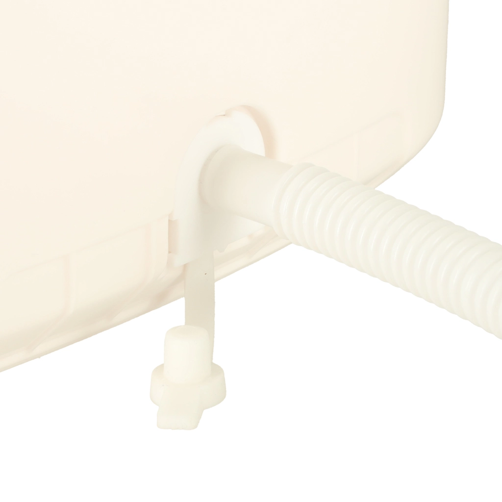 Sufficienti acqua e corrente per far funzionare la lavatrice in pochi minuti, anche grazie alla funzione di centrifuga che rimuove l'eccesso di umidità accelerando l'asciugatura dei capi. Può contenere fino a 12 litri di acqua calda fino a 50 gradi Celsius. Inclusi nel set, un tubo di scarico per uno svuotamento semplice dell'acqua.