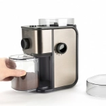 Il sistema di macinatura a macine fornisce chicchi uniformi senza surriscaldamento, consentendo di godere del ricco e autentico gusto del caffè. Il contenitore per caffè macinato rimovibile e trasparente rende la pulizia semplice.