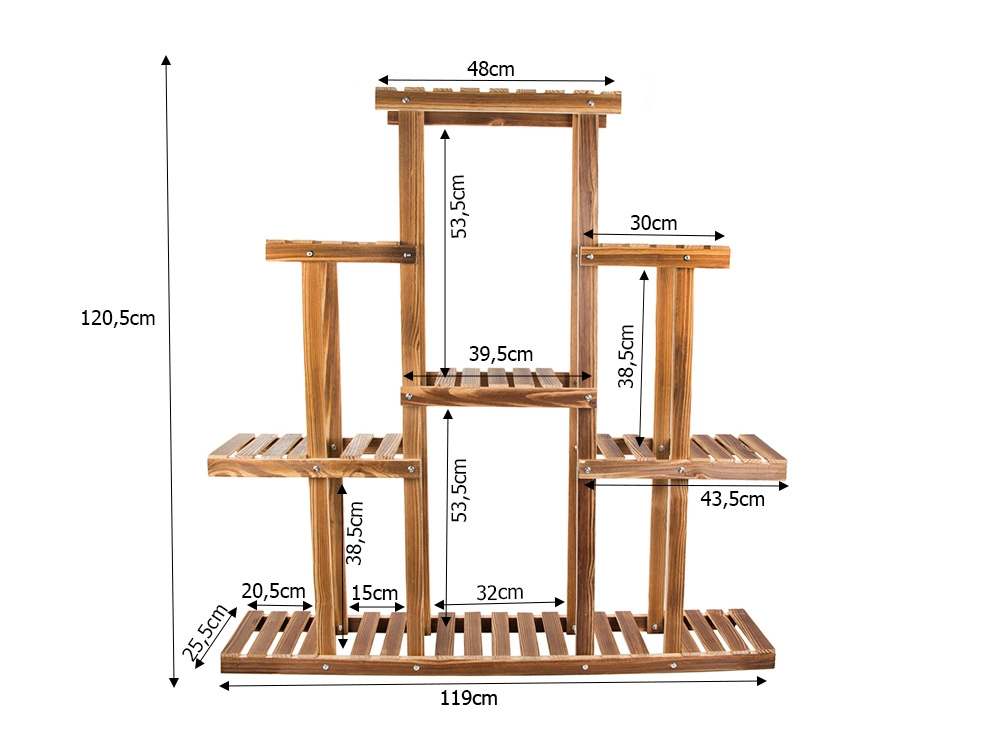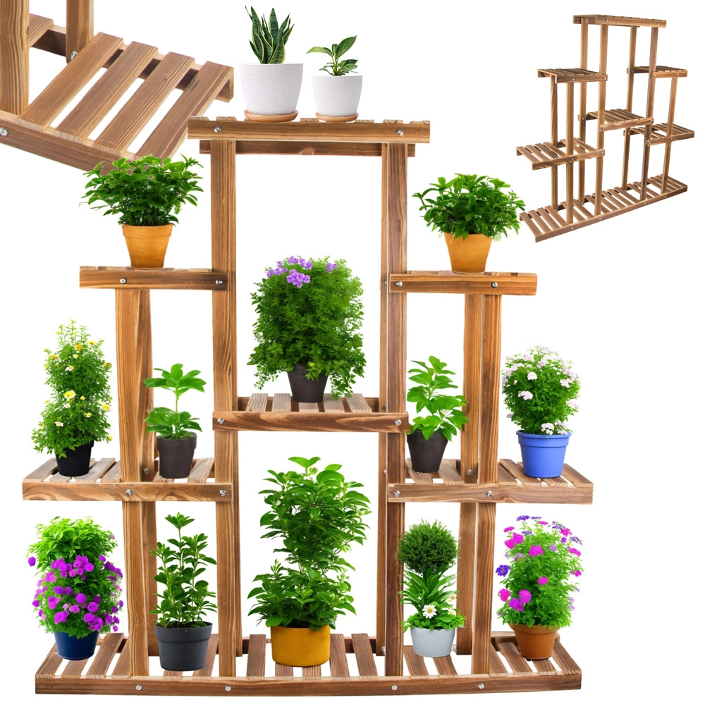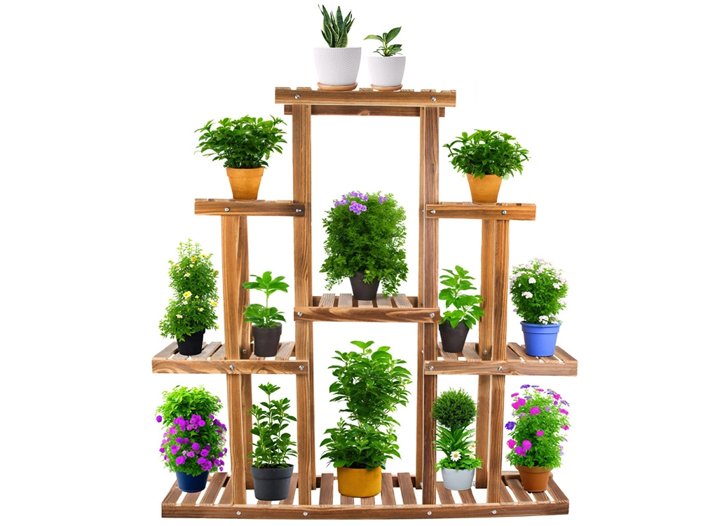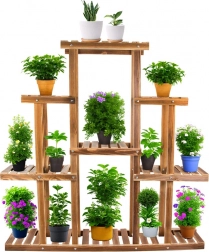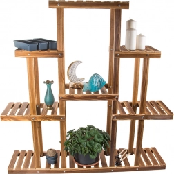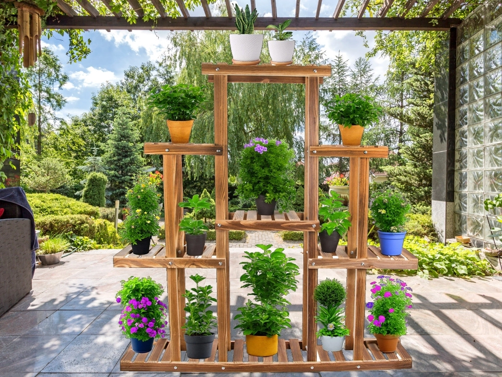 Crea una oasi verde in casa e all’aperto. Questo supporto in legno a più livelli offre fino a 13 posti per vasi e, grazie alla disposizione studiata delle mensole, permette di esporre facilmente erbe più piccole, piante medie e più grandi. La struttura a griglia aperta favorisce il drenaggio dell’acqua e la circolazione dell’aria, a beneficio della salute delle piante.