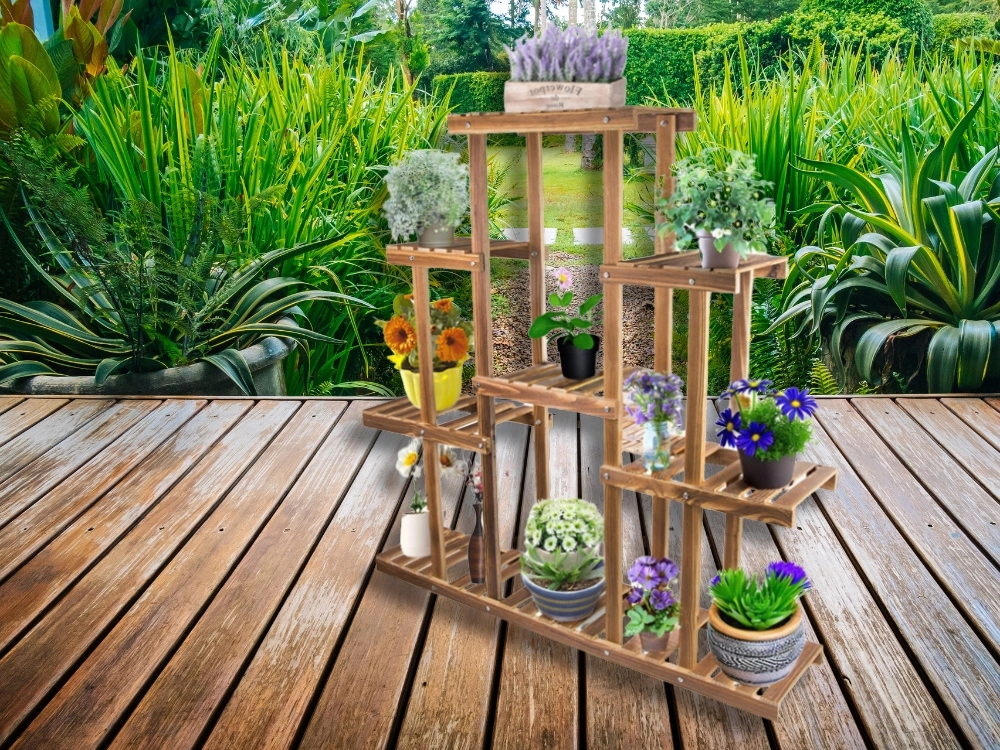 Elegante supporto per piante in legno a più piani per interni ed esterni, offre grande capacità, struttura stabile e mensole a griglia ariose per migliorare il drenaggio dell’acqua e la circolazione dell’aria. Perfetto per soggiorno, balcone, terrazza e giardino e, grazie al design universale, può essere utilizzato anche come mensola decorativa o piccola libreria.