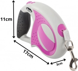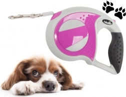 Guinzaglio automatico per cani dotato di un cinturino resistente e antiabrasione, ideale per un uso quotidiano. Grazie al sistema di avvolgimento automatico, l'uso del guinzaglio è facile e previene l'aggrovigliamento. Il pratico pulsante di blocco permette di fermare rapidamente il cane in qualsiasi momento.