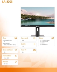 Il monitor Neovo LA-2703 unisce stile e prestazioni in un unico dispositivo compatto. c9 la scelta perfetta per l'uso quotidiano in ufficio, a casa e per gli appassionati di giochi. Con una vasta gamma di ingressi, inclusi HDMI, VGA e DP, offre alta flessibilit00 di connessione.