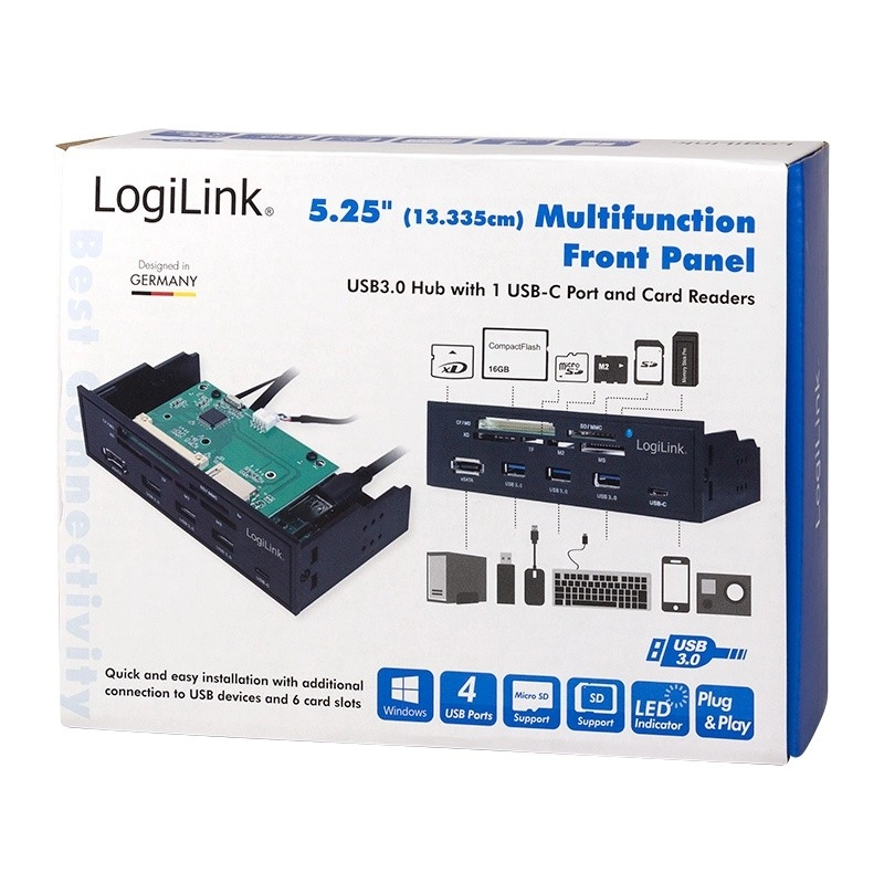 Pannello frontale multifunzionale da 5,25" con lettore di schede LOGILINK