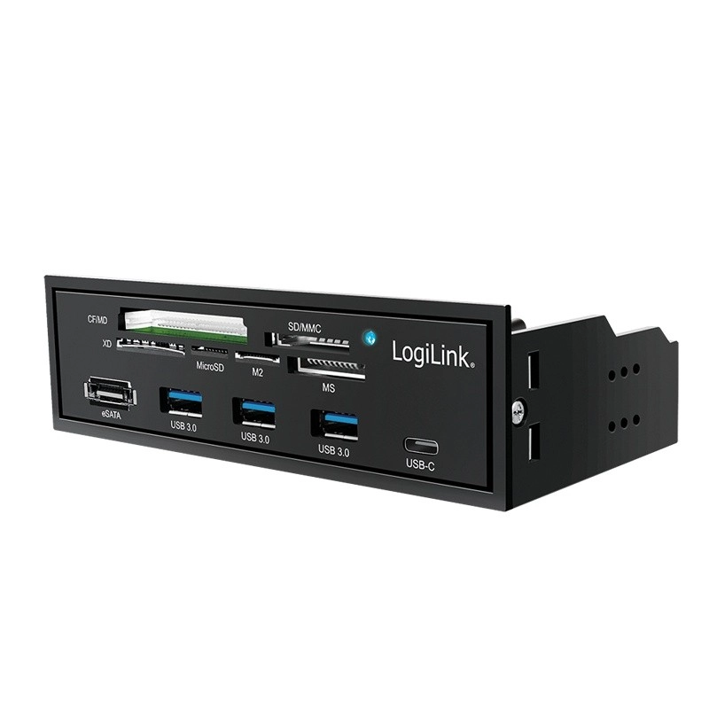 Amplia la connettività del tuo PC con il pannello frontale multifunzionale da 5,25" di LOGILINK. Offre un lettore per 6 tipi di schede di memoria (M2, MS, SD, microSD, XD, CF) e una ricca dotazione di porte: 3× USB 3.0 Type‑A, 1× USB‑C e 1× eSATA per trasferimenti dati rapidi e un collegamento facile degli accessori. L’installazione semplice nello slot anteriore da 5,25" del case garantisce un accesso immediato e comodo a tutte le interfacce.