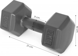 Le dimensioni 21 × 10 cm e il diametro dell'impugnatura di 3,5 cm si adattano bene alla mano. Il set 2×2 kg è adatto per rinforzare tutto il corpo e per la riabilitazione.