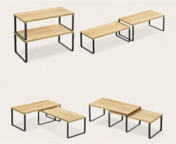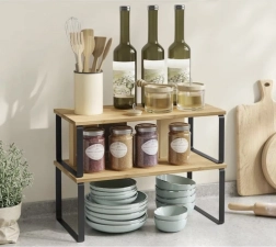 Con questo set di scaffali organizzerete la vostra cucina in modo pratico e con stile. Il materiale in bambù assicura solidità e stabilità, mentre il supporto in metallo garantisce lunga durata e robustezza.