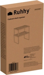 Questo scaffale da cucina in bambù Ruhhy offre resistenza all'umidità e non assorbe gli odori, rendendolo ideale per lo stoccaggio delle vostre spezie e alimenti. Il design elegante combinato con il telaio in metallo nero dona alla vostra cucina un aspetto moderno e naturale.