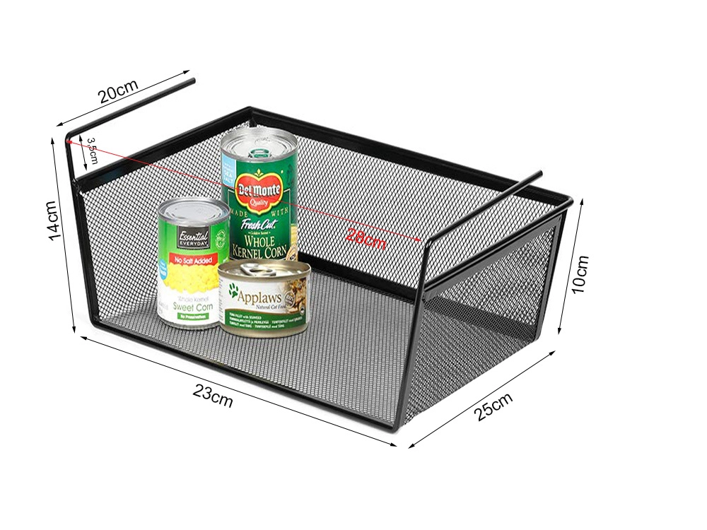 Cestello metallico sospeso sotto mensola – organizer nero per cucina e armadietti