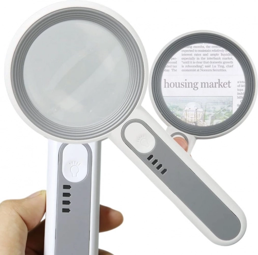 La lente d'ingrandimento illuminata offre un ingrandimento di 5x, perfetto per leggere caratteri piccoli, esaminare monete, francobolli o gioielli. Con 12 LED, offre un'illuminazione eccellente, assicurando che i tuoi occhi non si affatichino nemmeno durante l'uso prolungato. Grazie al manico ergonomico, puoi tenerla comodamente per lungo tempo.