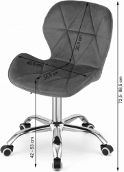 Portate comfort e stile nel vostro spazio lavorativo con questa elegante sedia da ufficio girevole. Il rivestimento in velluto e la base cromata con ruote in gomma assicurano sia un'estetica elegante che funzionalità. Questa sedia si integra perfettamente in camere da letto, studi, uffici e centri informativi, grazie alla sua costruzione senza tempo e design ergonomico, che offre supporto ottimale alla schiena e al corpo.