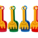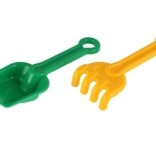 La paletta e il rastrello con bordi arrotondati sono pensati per le piccole mani dei bambini. Adatti dai 12 mesi e ideali per i primi giochi sulla sabbia.