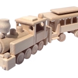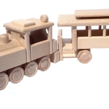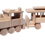 Il trenino è realizzato in faggio massello ed è trattato solo con cera e lucidatura. Conserva la venatura autentica del legno, è delicato e sicuro per le mani dei bambini.
