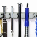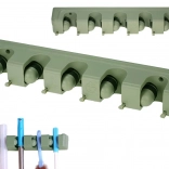 Il supporto a muro per scope e mop è l'assistente ideale per ogni casa o garage. Con cinque slot regolabili e sei piccoli ganci offre spazio sufficiente per tenere spazzole, mop e altri strumenti di pulizia. Realizzato in plastica resistente, tiene saldamente diversi diametri di aste, rendendolo ideale per una vasta gamma di esigenze domestiche e di giardinaggio.