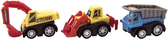 Nella confezione trovi diversi tipi di mezzi, come escavatore, pala caricatrice, bulldozer e dumper, che insieme creano la base ideale per un piccolo cantiere. Grazie alle dimensioni compatte sono adatti a casa, all’asilo e in viaggio.