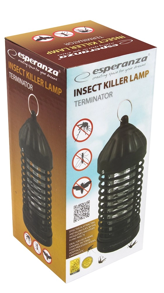 La lampada per insetti Esperanza Terminator attira efficacemente mosche, falene, zanzare e altri insetti volanti per eliminarli rapidamente. Senza l'uso di prodotti chimici o aerosol e senza odori.
