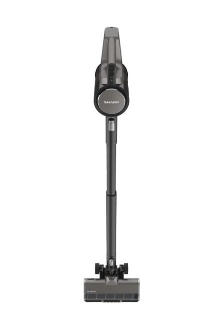 L'aspirapolvere Sharp 2in1 è un dispositivo innovativo che combina funzionalità di pulizia verticale e manuale. Dotato di un motore inverter senza spazzole da 300 W e una batteria Li-ion da 2000mAh, offre fino a 65 minuti di lavoro. Il manico telescopico con sette impostazioni di lunghezza (da 890 a 1100 mm) assicura un adattamento comodo per l'utente, mentre la posizione verticale permette uno stoccaggio facile.