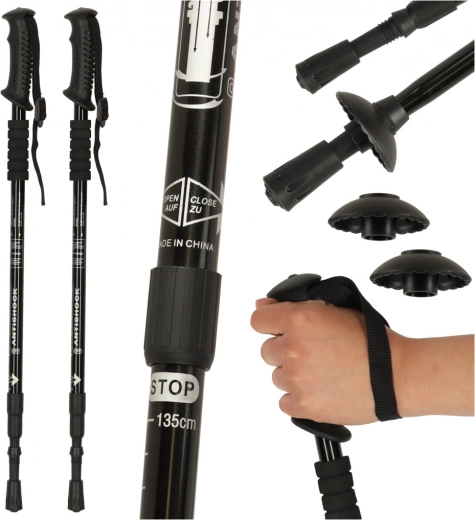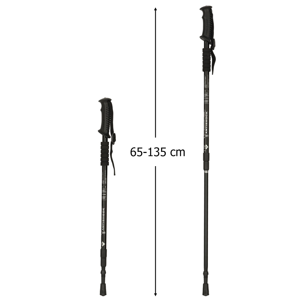 I bastoncini hanno una lunghezza regolabile da 65 a 135 cm, rendendoli ideali per diverse condizioni del terreno.