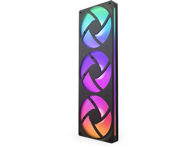 NZXT F360 RGB Core combina tre ventole in un unico design, garantendo un'installazione più semplice e una gestione efficace del raffreddamento. Basta collegare un cavo al controller NZXT (venduto separatamente) e potrete controllare l'illuminazione e la velocità tramite il software NZXT CAM. Può essere anche collegato al connettore 5V ARGB di qualsiasi scheda madre usando il cavo sdoppiatore fornito.
