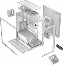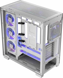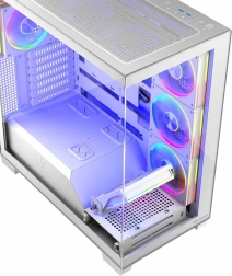 La case è compatibile con schede madri standard e inverse e supporta il raffreddamento a liquido fino a 360 mm. L'interno spazioso offre ampio spazio anche per i componenti più grandi, come schede grafiche fino a 420 mm e dissipatori CPU fino a 175 mm.