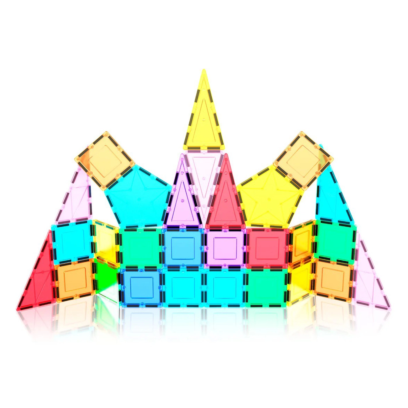 Questo variopinto set di tessere magnetiche è ideale per i piccoli costruttori. Grazie ai bordi magnetici, i pezzi si agganciano con facilità, così i bambini costruiscono rapidamente modelli 3D stabili – dal razzo alle creazioni di fantasia. I colori trasparenti e le forme geometriche invitano a sperimentare e sviluppano motricità fine e pensiero logico.