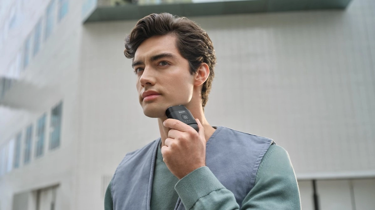 Corpo compatto con custodia protettiva e blocco da viaggio, ideale per la borsa. IPX7 consente rasatura a secco o con gel/schiuma e la ricarica rapida di 5 minuti basta per una rasatura completa.