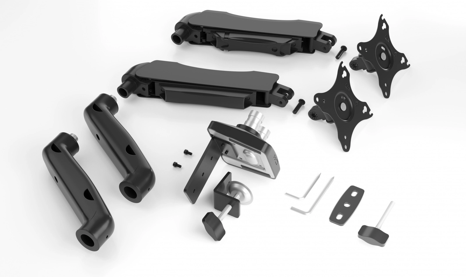 - Risparmio di spazio – due monitor su bracci liberano preziosa superficie sulla scrivania.