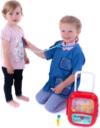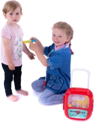 Questo vivace set da dottore per bambini porta in cameretta tanto divertimento e apprendimento. Tutti gli strumenti sono sicuri, leggeri e facili da riporre nella elegante valigetta con ruote, con cui i bambini possono giocare a casa o in viaggio. Il realistico stetoscopio con suono del cuore rende il gioco autentico e stimola la naturale curiosità.