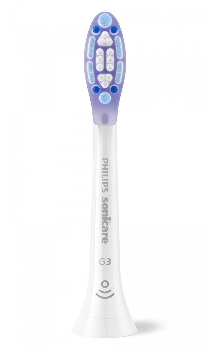 Le testine PHILIPS Sonicare G3 Premium Gum Care sono progettate per la linea gengivale sensibile e per una pulizia quotidiana di alto livello. La forma concava del campo di setole aumenta il contatto con le gengive, mentre le setole morbide su più livelli raggiungono efficacemente gli spazi interdentali e lungo il bordo gengivale. La tecnologia sonica con flusso dinamico dei fluidi aiuta a pulire anche dove le setole non arrivano.