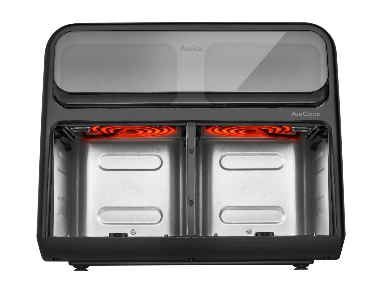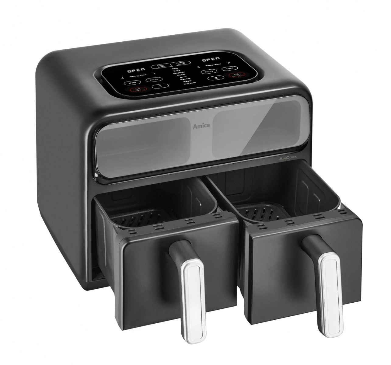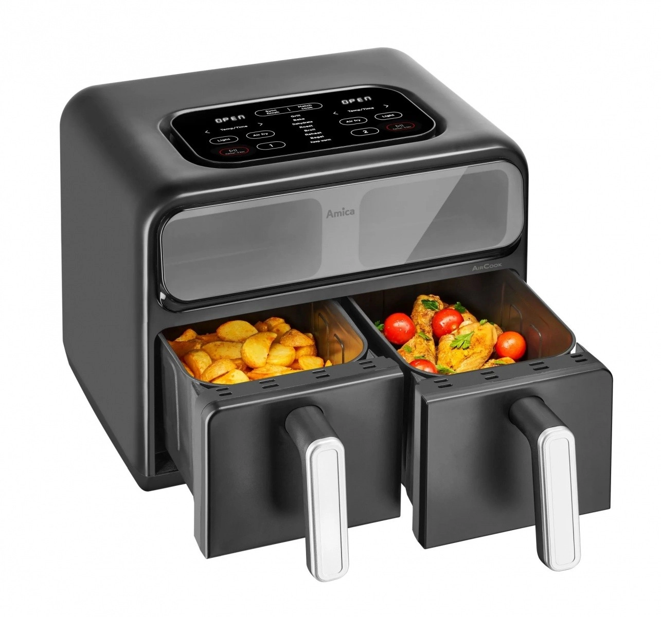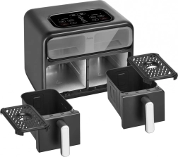Prepara patatine croccanti, carne succosa e prodotti da forno delicati con il minimo olio grazie alla friggitrice ad aria a doppia zona. Le due camere indipendenti permettono di cucinare pietanze diverse contemporaneamente, mentre la pratica finestra e il pannello touch con display LED garantiscono il pieno controllo di temperatura e tempo. Sfrutta l’ampia scelta di modalità come AirFry, Bake, Roast o Dehydrate; le funzioni Sincronizzazione e Capacità doppia fanno risparmiare tempo, e gli elementi di sicurezza come spegnimento automatico e protezione dal surriscaldamento offrono tranquillità in cucina.