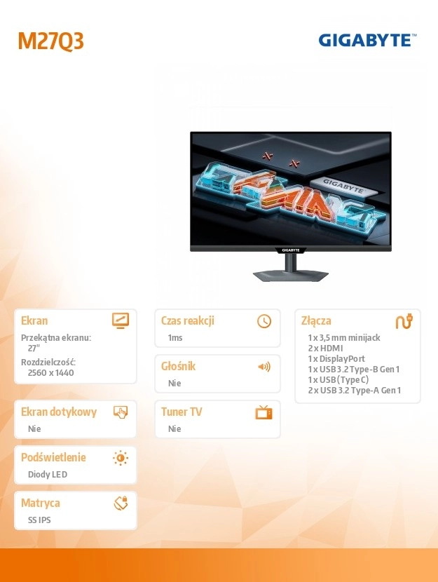 La connettività moderna DisplayPort e HDMI consente di collegare facilmente PC e console. Il monitor è progettato per gamer che richiedono massima fluidità, nitidezza e prestazioni stabili nei titoli e-sport.