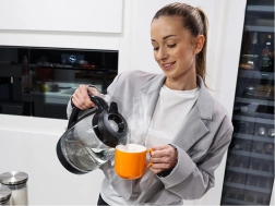 Il vetro resistente consente di controllare facilmente il livello dell’acqua, mentre la luce LED blu indica elegantemente il riscaldamento e dona un look moderno alla cucina.