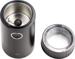 Scopri la comodità della preparazione del caffè a casa con il macinino elegante e compatto LAFE GrindMaster. Basta versare i chicchi, chiudere il coperchio e premere il pulsante: al resto pensa il motore potente con lame in acciaio inox resistenti. Il coperchio trasparente consente di controllare visivamente il grado di macinatura.