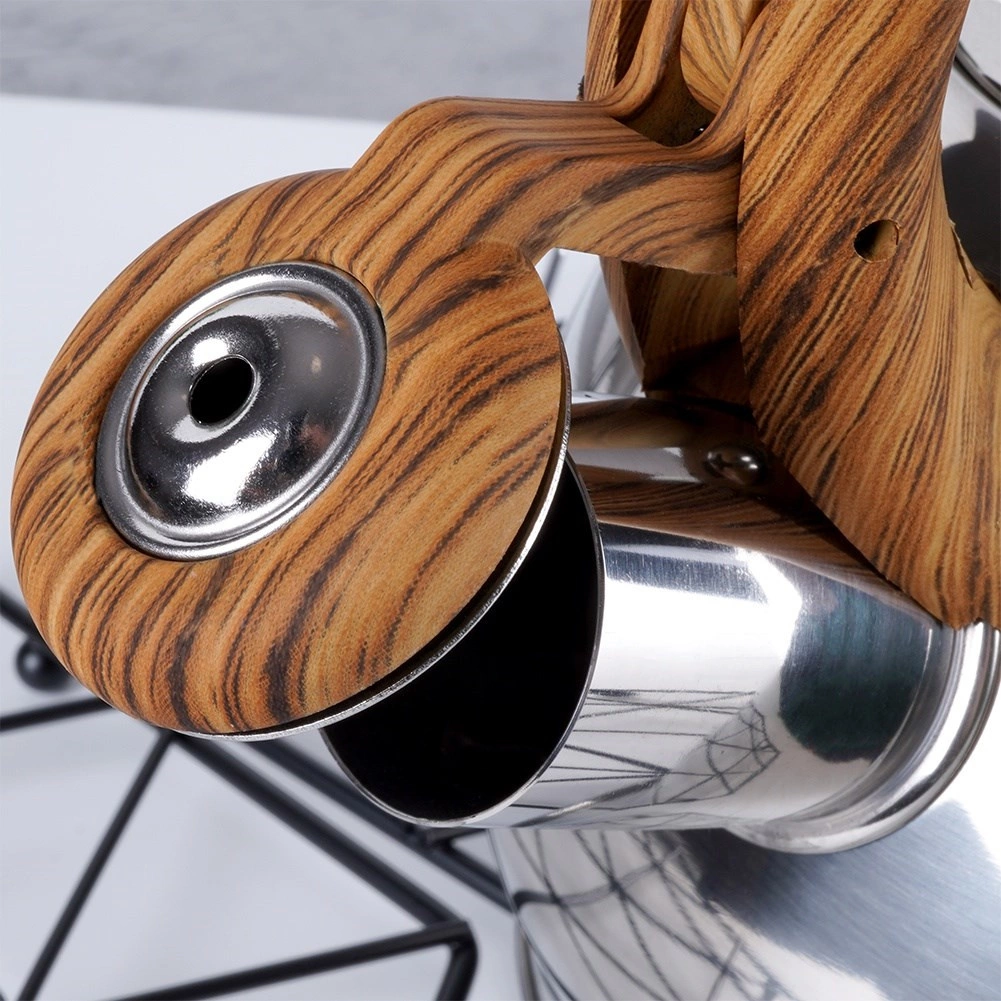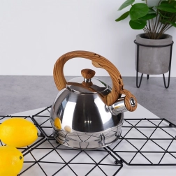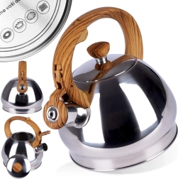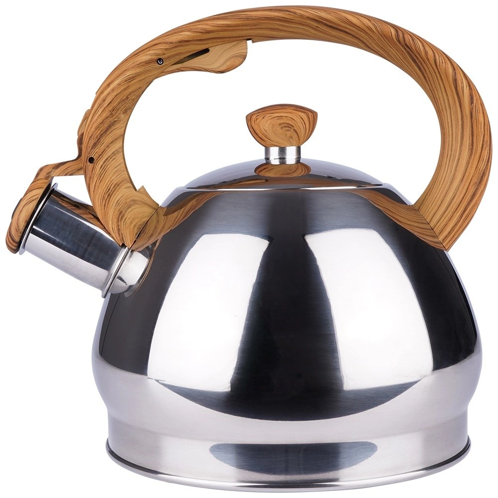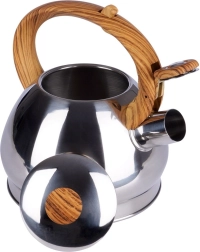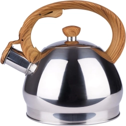 Elegante bollitore in acciaio inox con capacità di 1,5 l e coperchio del beccuccio con fischio automatico per segnalare in sicurezza l’ebollizione. Il manico ergonomico resistente al calore con effetto legno garantisce un versamento confortevole, fondo ampio per un riscaldamento rapido e compatibilità universale inclusa l’induzione. Ideale per tè, caffè ed erbe.