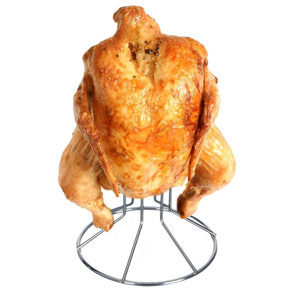 Il supporto è realizzato in filo metallico cromato di alta qualità, ha una base stabile ed è facile da usare e da riporre. È universale: non è adatto solo per il pollo, ma anche per anatra, tacchino o oca, rendendolo un pratico accessorio per ogni casa.