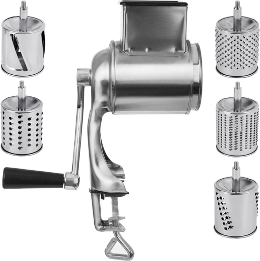 Grattugia manuale rotativa con 5 tamburi e morsetto da tavolo