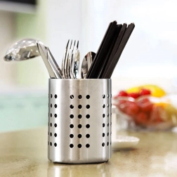 Mantieni in ordine il piano della cucina con questo robusto ed elegante portautensili in acciaio inox. La struttura perforata favorisce un’asciugatura rapida e previene l’accumulo di umidità, ideale per riporre posate e utensili da cucina appena lavati. Facile da pulire e, grazie all’ampia apertura, consente di riporre comodamente sia accessori grandi che piccoli.