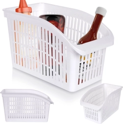 Questo organizer universale aiuta a sistemare ordinatamente bottiglie di salse, frutta, verdura e altri alimenti in frigorifero, dispensa o pensile. La struttura aperta e perforata garantisce la circolazione dell’aria per una migliore freschezza e un rapido controllo visivo del contenuto. Il materiale robusto ma leggero è adatto all’uso quotidiano.