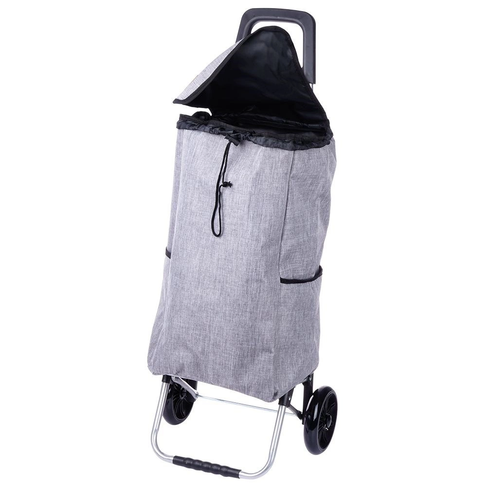 Pratico carrello per la spesa con capiente borsa da 40 l che facilita gli acquisti quotidiani e il trasporto degli oggetti senza fatica. Grazie alla struttura metallica stabile, alle ruote grandi e alla maniglia imbottita, la manovrabilità è confortevole anche su superfici irregolari. La borsa si chiude con una cordicella sotto la patta, dispone di una tasca posteriore con zip e di tasche laterali per piccoli oggetti. Portata fino a 30 kg e manutenzione facile lo rendono una scelta ideale per l’uso quotidiano.