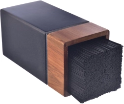 Il portacoltelli WOODEN combina solido legno di acacia con plastica resistente in elegante colore nero. L’inserto universale in fibre di plastica consente di inserire coltelli di qualsiasi forma e dimensione senza danneggiarli. Grazie alle dimensioni compatte 11 × 10,5 × 22,5 cm si adatta a ogni piano cucina offrendo al contempo un deposito sicuro e ordinato.