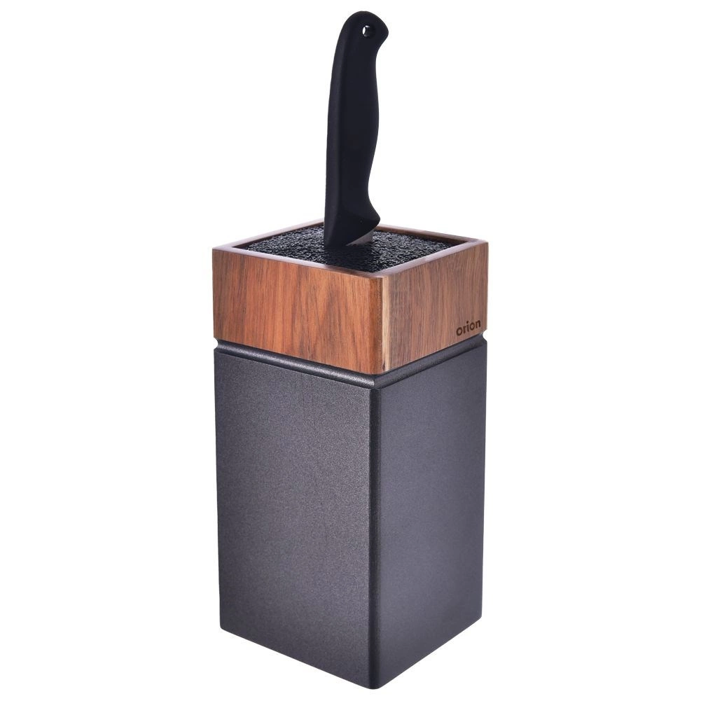 Le fitte fibre di plastica all’interno del supporto si adattano a coltelli in acciaio e ceramica e li mantengono saldamente in posizione senza rischio di smussatura.