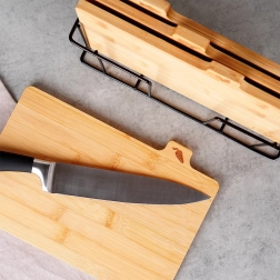 Il bambù è un materiale duro e dimensionalmente stabile, non assorbe gli odori e asciuga rapidamente. È delicato sul filo dei coltelli ed è adatto all’uso quotidiano.