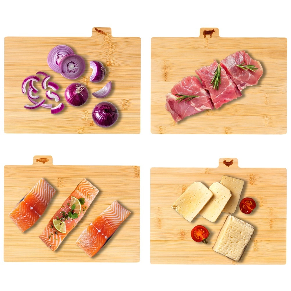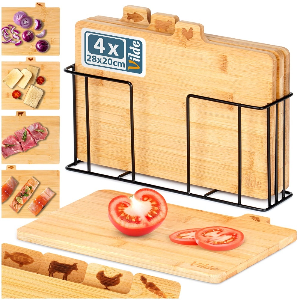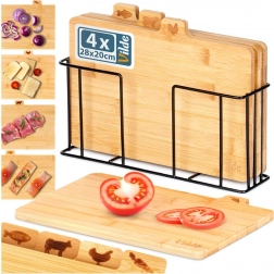 Taglieri in bambù con supporto 28 × 20 cm, set da 4 pezzi