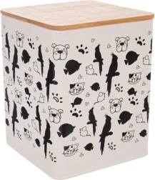 Contenitore elegante e funzionale per una conservazione comoda e igienica del cibo per cani, gatti, uccelli e piccoli roditori. Il corpo in metallo bianco è robusto e resistente, il coperchio in legno di bambù con guarnizione in silicone assicura una chiusura ermetica e protegge il contenuto dall’umidità e dalla perdita di aroma.