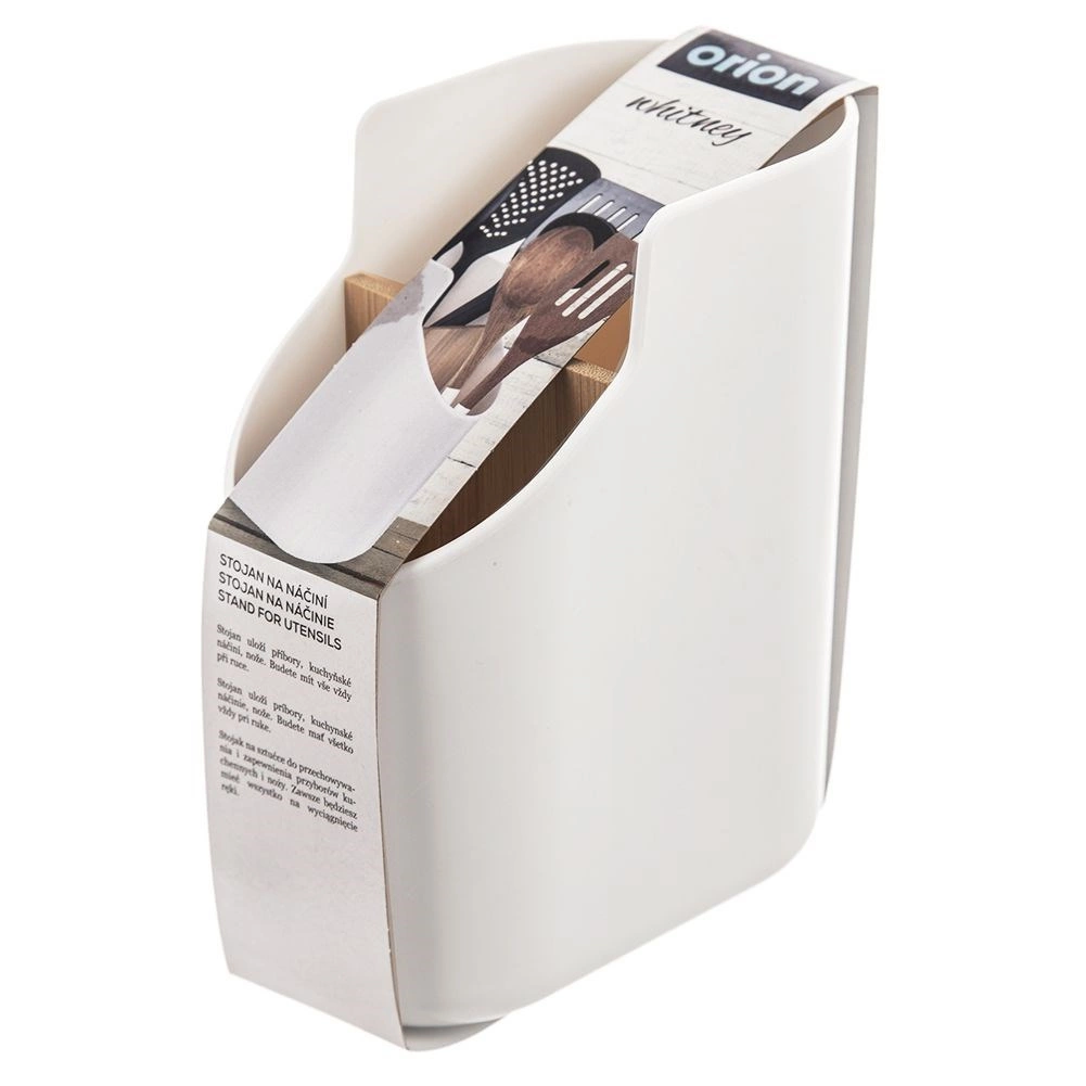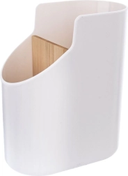 Pratico organizer per utensili da cucina e posate con elegante corpo bianco e divisorio in bambù rimovibile. Grazie al doppio scomparto, al fondo perforato e alla base in silicone antiscivolo, mantiene gli strumenti in ordine e all’asciutto. Leggero, resistente e facile da pulire – un accessorio ideale per ogni cucina.