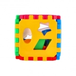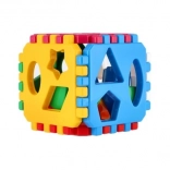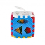 La confezione include i pezzi per montare il cubo e un set di forme da inserire nelle aperture corrispondenti. La plastica resistente e le dimensioni compatte 12 × 12 × 12 cm lo rendono un ottimo giocattolo a casa e in viaggio.