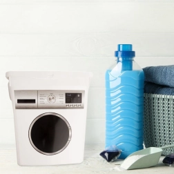 Mantieni l’ordine in lavanderia e in bagno. Il contenitore con stampa della lavatrice offre spazio sufficiente per i detergenti e, grazie al coperchio richiudibile, aiuta a preservarne la freschezza e il profumo. La struttura resistente in plastica di qualità, di colore bianco, è facile da pulire e si adatta perfettamente a qualsiasi interno.
