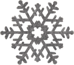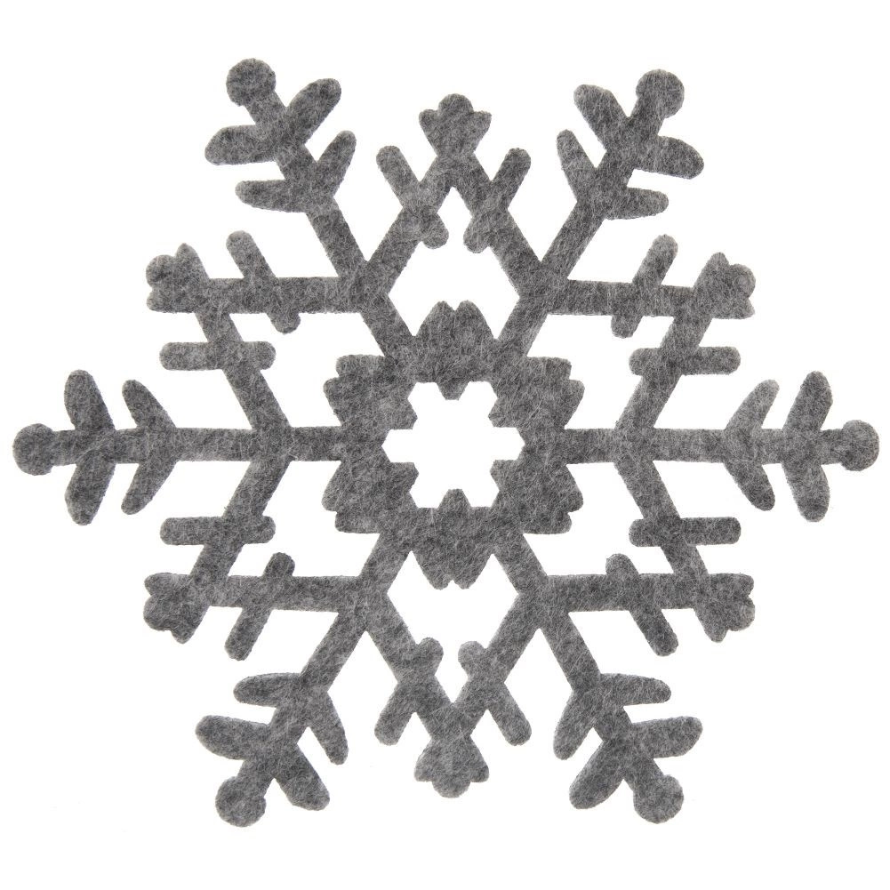 Un set elegante di sei sottobicchieri in feltro a forma di fiocchi di neve protegge il tuo tavolo e allo stesso tempo lo decora. I sottobicchieri, con dimensioni di 13,5 × 12 cm, sono realizzati in feltro grigio di qualità, ideali per bevande calde e fredde e anche per candele antigoccia. Protezione della superficie, aspetto decorativo e lunga durata in uno.