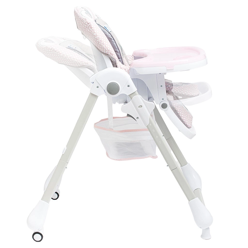 Il seggiolone BABY MIX Infant rosa unisce comfort, sicurezza e facile manutenzione in un unico prodotto. Grazie alla regolazione dell’altezza a 7 livelli, si adatta facilmente all’altezza del tavolo e alla crescita del bambino. Lo schienale reclinabile in tre posizioni e il poggiapiedi a due posizioni garantiscono la corretta ergonomia durante i pasti e il riposo. Il pratico doppio vassoio removibile offre spazio per mangiare e giocare, mentre il cestello inferiore mantiene tutto l’occorrente a portata di mano.