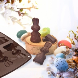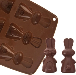 Questo stampo in silicone marrone consente di preparare fino a 6 adorabili coniglietti in una volta. Grazie al materiale flessibile e antiaderente, sformerai con facilità biscotti, praline o cioccolatini con un rilievo dettagliato. Lo stampo è leggero, salvaspazio e non assorbe odori né sapori.